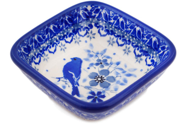 Polish Pottery 3" Square Bowl Winter Beauty UNIKAT