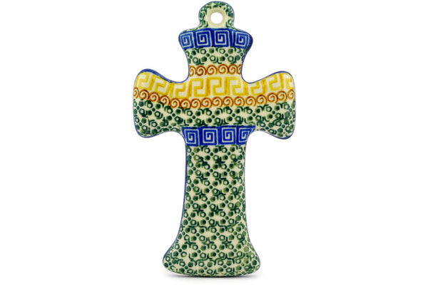 Polish Pottery 7" Cross Grecian Sea