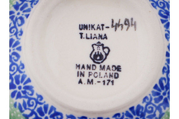 This is a Polish pottery Unikat (Signature) Bubble Mug, which means that it has been hand painted with both sponges and brushes and it is signed by the artist who painted it. Unikat pieces are the most intricate works of art. Larger Unikat items take hours of very careful work to finish.
