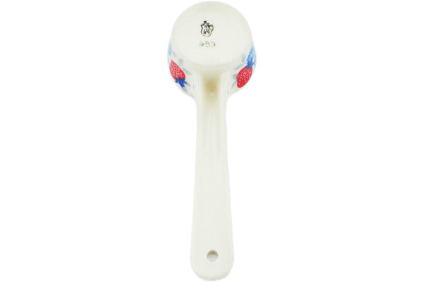 This Polish pottery Measuring Cup is made by Ceramika Artystyczna workshop in Boleslawiec, Poland. Manufacturer item number H0952M. It is 1" high and measures 5¼" by 1¾". The capacity of this Measuring Cup is 0.5 oz when filled to rim and it weighs 0.1 lbs. It is part of the Strawberry Heaven Collection.