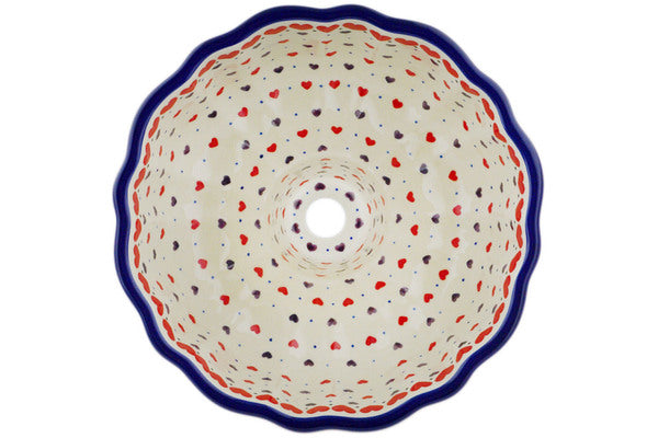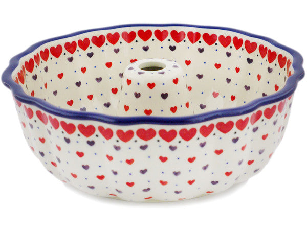 Polish Pottery 10" Cake Mould Red Hearts Delight