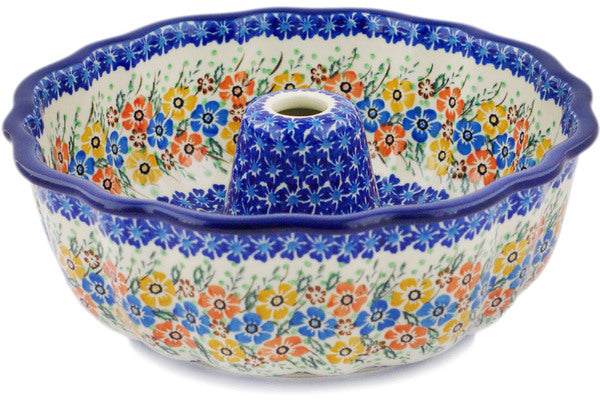 Polish Pottery 10" Cake Mould Spring Blooms UNIKAT