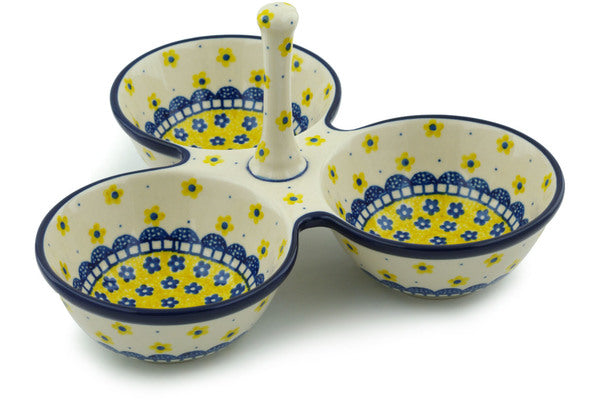 Polish Pottery 10" Condiment Dish Sunshine Daisies