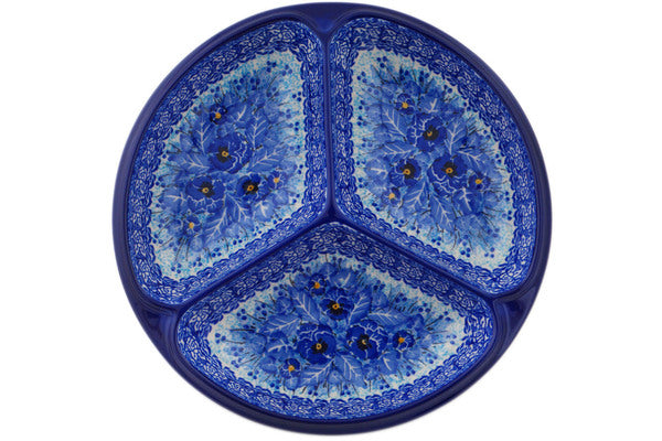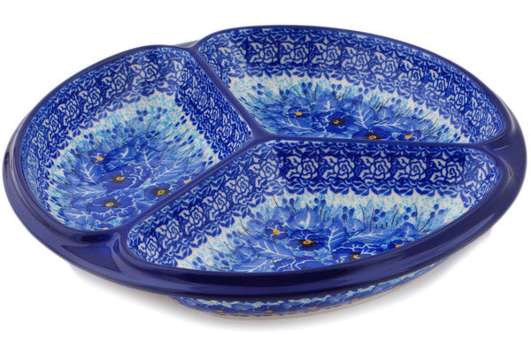 Polish Pottery 10" Divided Dish Deep Winter UNIKAT