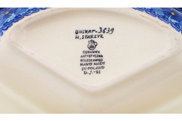 This is a Polish pottery Unikat (Signature) Divided Dish, which means that it has been hand painted with both sponges and brushes and it is signed by the artist who painted it. Unikat pieces are the most intricate works of art. Larger Unikat items take hours of very careful work to finish.