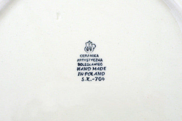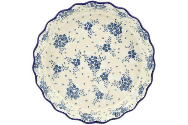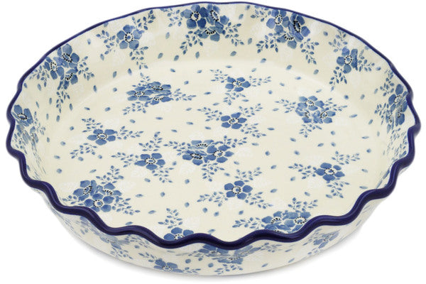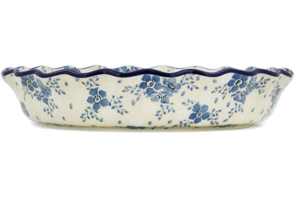 This Polish pottery Fluted Pie Dish is made by Ceramika Artystyczna workshop in Boleslawiec, Poland. Manufacturer item number H1757L. It is 2" high and measures 10¼" by 10¼". The capacity of this Fluted Pie Dish is 46.7 oz when filled to rim and it weighs 2.4 lbs. It is part of the Rain Clouds Collection.
