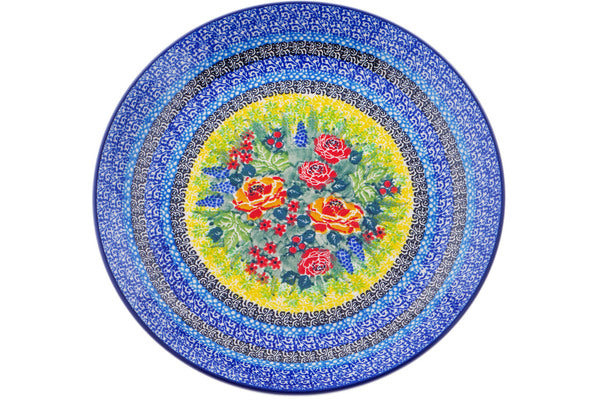 This Polish pottery Plate is made by Ceramika Artystyczna workshop in Boleslawiec, Poland. Manufacturer item number H2144O. It is 1½" high and measures 10½" by 10½". The weight of this Plate is 2.2 lbs. The pattern was designed by artist Teresa Liana. It is part of the Copper Rose Meadow Collection.