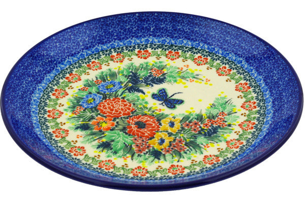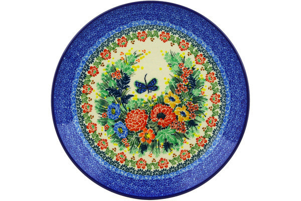 This Polish pottery Plate is made by Ceramika Artystyczna workshop in Boleslawiec, Poland. Manufacturer item number H6756E. It is 1½" high and measures 10½" by 10½". The weight of this Plate is 2.2 lbs. The pattern was designed by artist Teresa Liana. It is part of the Splendid Dragonfly Collection.