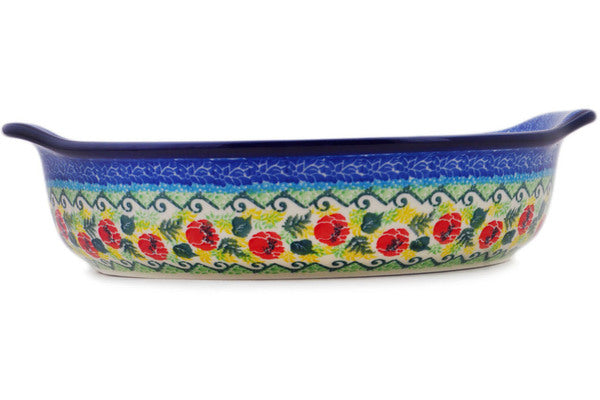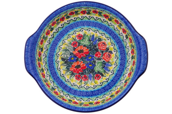 Polish Pottery 10-inch Round Baker with Handles Splendid Meadow UNIKAT