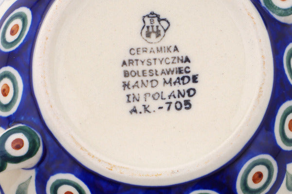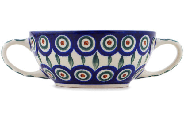 Polish Pottery 10 oz Bouillon Cup Peacock Leaves