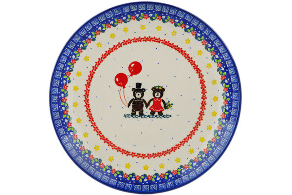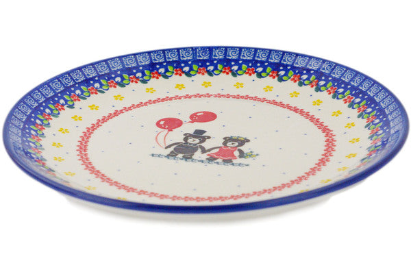 This Polish pottery Plate is made by Ceramika Artystyczna workshop in Boleslawiec, Poland. Manufacturer item number H7309Q. It is 1¼" high and measures 10" by 10". The weight of this Plate is 1.5 lbs. The pattern was designed by artist MARIA STARZYK. It is part of the Bear Party Duo Collection.