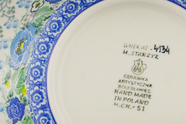 This Polish pottery Plate is made by Ceramika Artystyczna workshop in Boleslawiec, Poland. Manufacturer item number H8085Q. It is 1¼" high and measures 10" by 10". The weight of this Plate is 1.5 lbs. The pattern was designed by artist Maria Starzyk. It is part of the Bright Petals Collection.