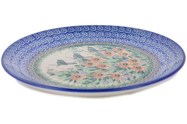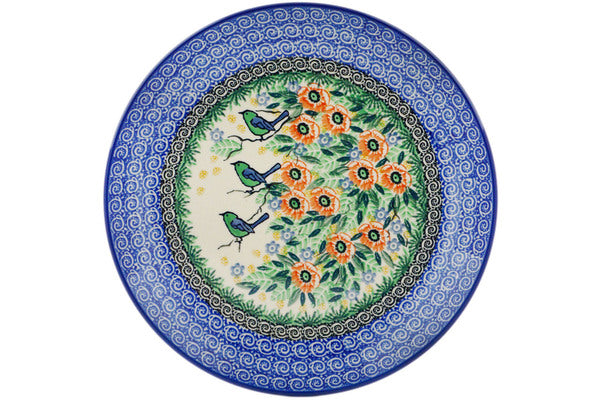 This Polish pottery Plate is made by Ceramika Artystyczna workshop in Boleslawiec, Poland. Manufacturer item number H7984Q. It is 1¼" high and measures 10" by 10". The weight of this Plate is 1.5 lbs. The pattern was designed by artist Maria Starzyk. It is part of the Green Breasted Kiskadees Collection.