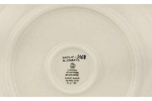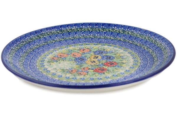 This Polish pottery Plate is made by Ceramika Artystyczna workshop in Boleslawiec, Poland. Manufacturer item number H8024Q. It is 1¼" high and measures 10" by 10". The weight of this Plate is 1.5 lbs. The pattern was designed by artist Maria Starzyk. It is part of the Pansy Dance Collection.