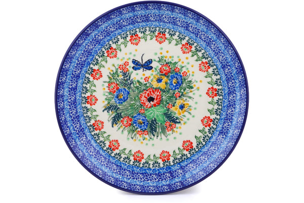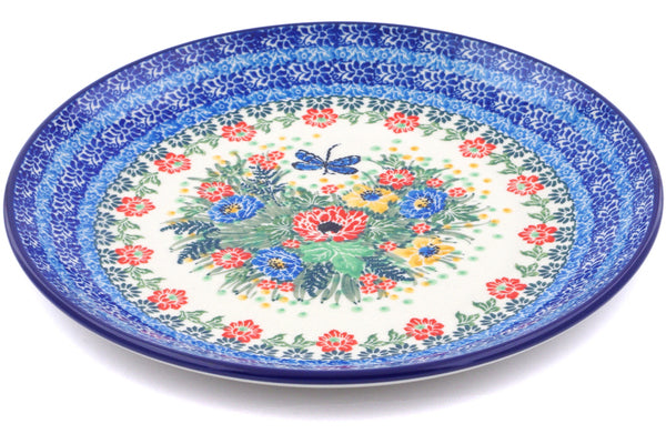 This Polish pottery Plate is made by Ceramika Artystyczna workshop in Boleslawiec, Poland. Manufacturer item number H3575I. It is 1¼" high and measures 10" by 10". The weight of this Plate is 1.5 lbs. The pattern was designed by artist Teresa Liana. It is part of the Splendid Dragonfly Collection.