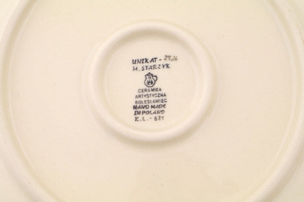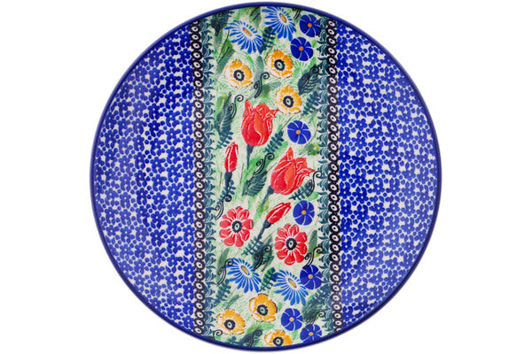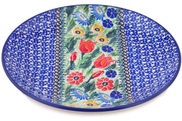 This Polish pottery Plate is made by Ceramika Artystyczna workshop in Boleslawiec, Poland. Manufacturer item number H3752Q. It is 1¼" high and measures 10" by 10". The weight of this Plate is 1.5 lbs. The pattern was designed by artist Maria Starzyk. It is part of the Wildflower Path Collection.