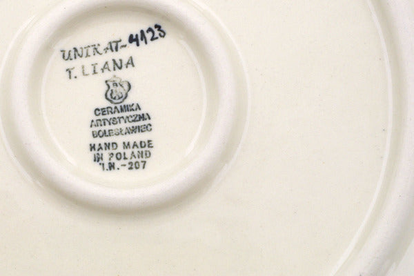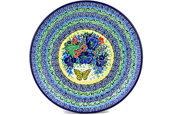 This Polish pottery Plate is made by Ceramika Artystyczna workshop in Boleslawiec, Poland. Manufacturer item number H3577I. It is 1¼" high and measures 10" by 10". The weight of this Plate is 1.5 lbs. The pattern was designed by artist Teresa Liana. It is part of the Yellow Monarch Meadow Collection.