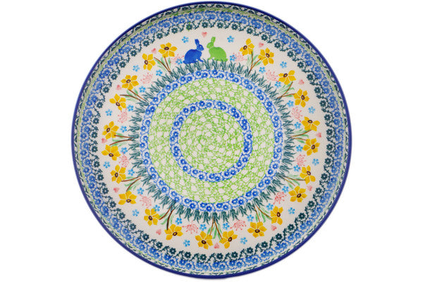 This Polish pottery Platter is made by Ceramika Artystyczna workshop in Boleslawiec, Poland. Manufacturer item number H9038Q. It is ¾" high and measures 10" by 10". The weight of this Platter is 2.0 lbs. It is part of the Hopping In Love Collection.