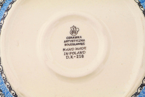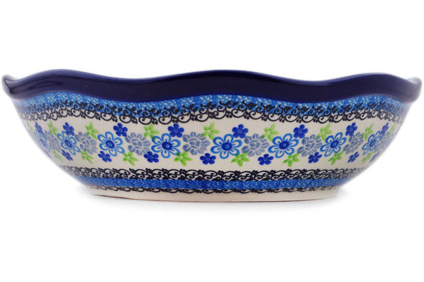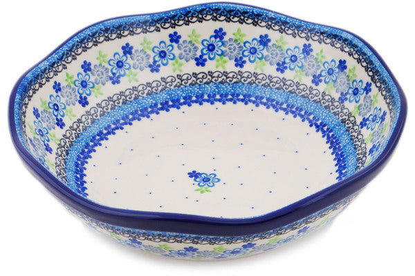 This Polish pottery Scalloped Bowl is made by Ceramika Artystyczna workshop in Boleslawiec, Poland. Manufacturer item number H6398Q. It is 3" high and measures 10" by 10". The weight of this Scalloped Bowl is 2.4 lbs. It is part of the Blue And Green Flower Dream Collection.