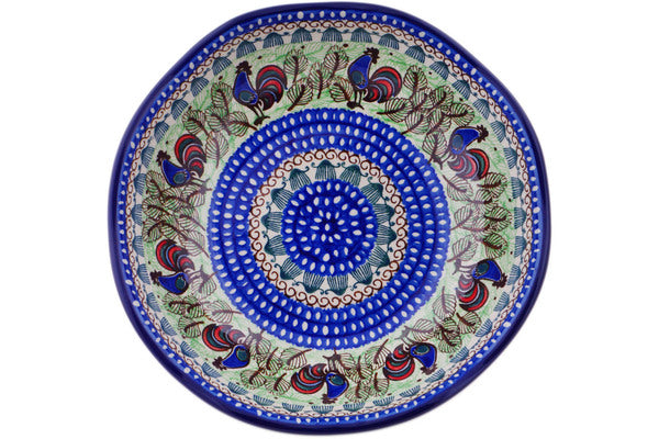 Polish Pottery 10" Scalloped Bowl Rooster Row UNIKAT