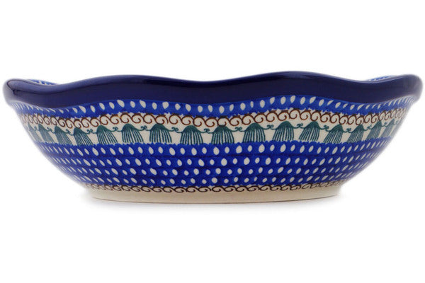 This is a Polish pottery Unikat (Signature) Scalloped Bowl, which means that it has been hand painted with both sponges and brushes and it is signed by the artist who painted it. Unikat pieces are the most intricate works of art. Larger Unikat items take hours of very careful work to finish.