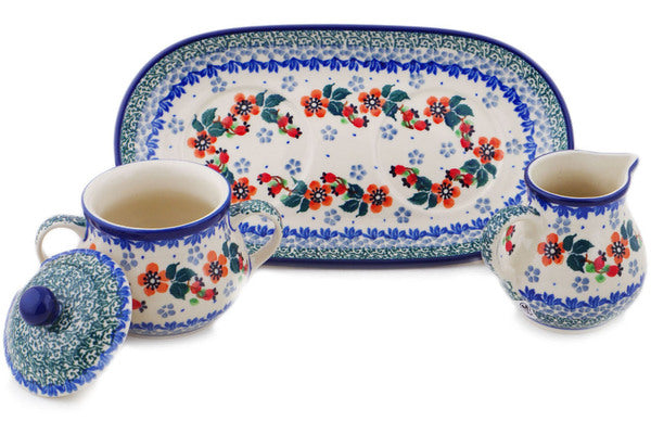 Polish Pottery 10" Sugar and Creamer Set Budding Blossom