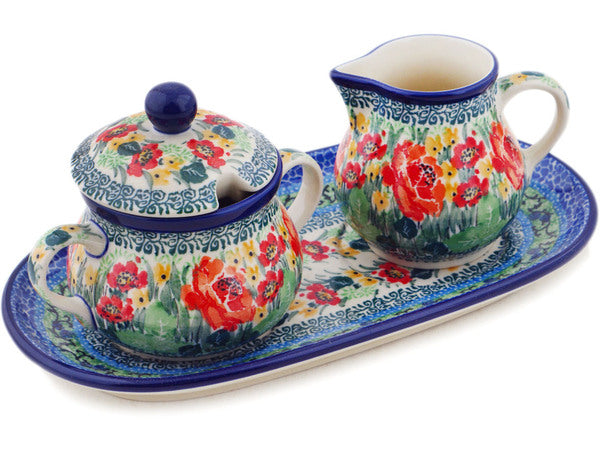 Polish Pottery 10" Sugar and Creamer Set Splendid Meadow UNIKAT
