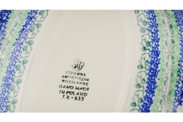 This Polish pottery Basket with Handle is made by Ceramika Artystyczna workshop in Boleslawiec, Poland. Manufacturer item number H9091Q. It is 8" high and measures 11" by 7½". The weight of this Basket with Handle is 2.7 lbs. It is part of the Pretty Pullet Collection.