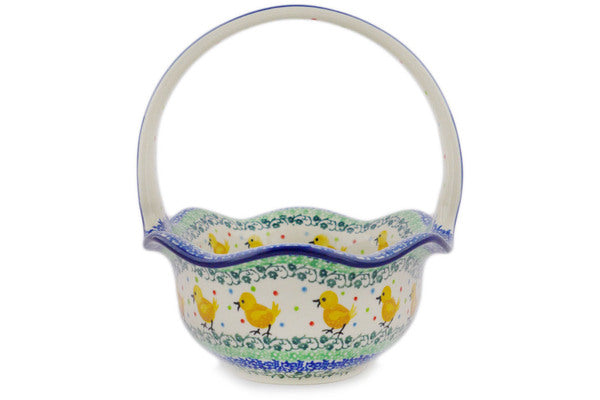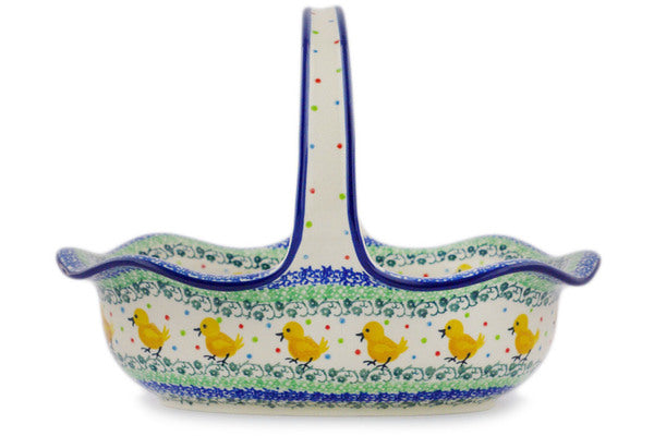 Polish Pottery 11" Basket with Handle Pretty Pullet