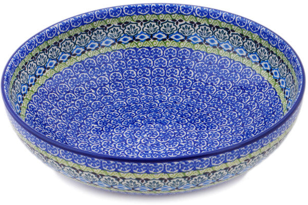 This Polish pottery Bowl is made by Ceramika Artystyczna workshop in Boleslawiec, Poland. Manufacturer item number H5703Q. It is 3" high and measures 10¾" by 10¾". The capacity of this Bowl is 83.3 oz when filled to rim and it weighs 3.4 lbs. The pattern was designed by artist Maria Starzyk. It is part of the Artistic Boho Collection.