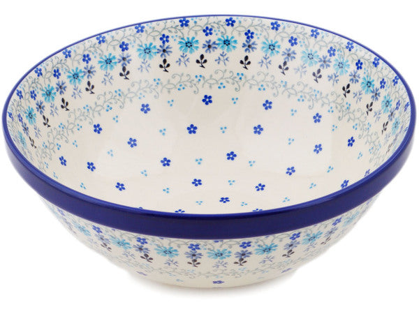 This Polish pottery Bowl is made by Ceramika Artystyczna workshop in Boleslawiec, Poland. Manufacturer item number H6433Q. It is 4¼" high and measures 10¾" by 10¾". The capacity of this Bowl is 111.6 oz when filled to rim and it weighs 4.0 lbs. It is part of the Baby Blue Garden Collection.