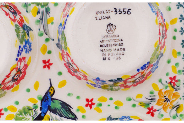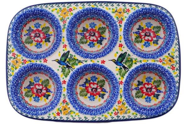Polish Pottery 11" Muffin Pan Hummingbird Meadow UNIKAT