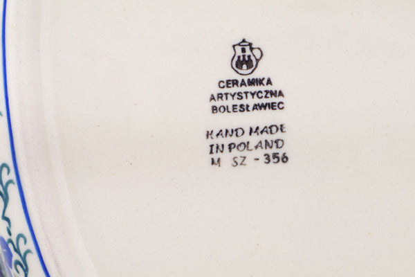 This Polish pottery Oval Baker is made by Ceramika Artystyczna workshop in Boleslawiec, Poland. Manufacturer item number H5646Q. It is 2¼" high and measures 10¾" by 7¼". The capacity of this Oval Baker is 49.0 oz when filled to rim and it weighs 2.1 lbs. The pattern was designed by artist Teresa Liana. It is part of the Blue Dogwood Collection.