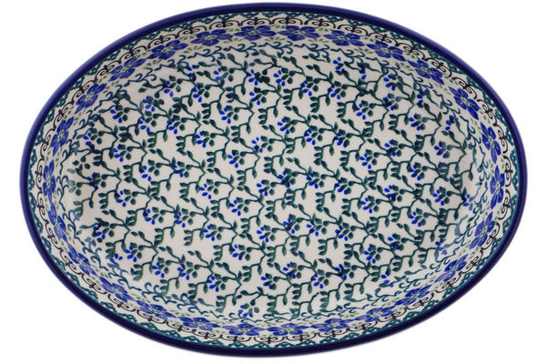 Polish Pottery 11" Oval Baker Blue Dogwood