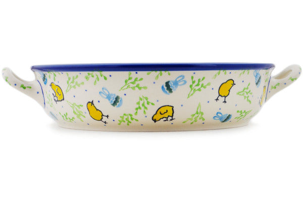 Polish Pottery 11" Round Baker with Handles Easter Day