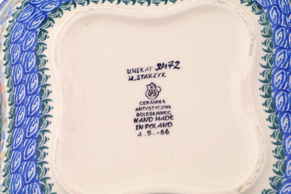 This is a Polish pottery Unikat (Signature) Square Baker with Handles, which means that it has been hand painted with both sponges and brushes and it is signed by the artist who painted it. Unikat pieces are the most intricate works of art. Larger Unikat items take hours of very careful work to finish.