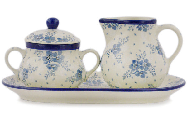 Polish Pottery 11" Sugar and Creamer Set Rain Clouds