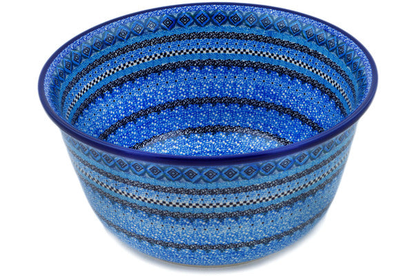 Polish Pottery 12-inch (8 quarts) Mixing Bowl Blue Kaleidoscope UNIKAT