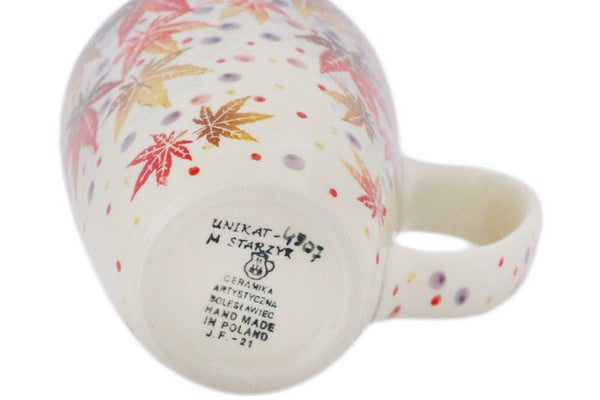 This Polish pottery Mug is made by Ceramika Artystyczna workshop in Boleslawiec, Poland. Manufacturer item number H3445Q. It is 4½" high and measures 5" by 3½". The capacity of this Mug is 12.2 oz when filled to rim and it weighs 0.9 lbs. It is part of the Perfect Autumn Collection.