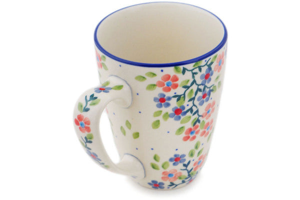 This Polish pottery Mug is made by Ceramika Artystyczna workshop in Boleslawiec, Poland. Manufacturer item number H3506Q. It is 4½" high and measures 5" by 3½". The capacity of this Mug is 12.2 oz when filled to rim and it weighs 0.9 lbs. It is part of the Verdant Hummingbird Spring Collection.