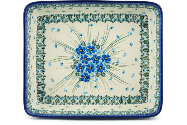 Polish Pottery 12" Rectangular Baker Forget Me Not UNIKAT