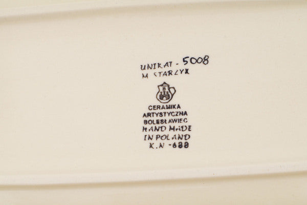 This is a Polish pottery Unikat (Signature) Sushi Tray, which means that it has been hand painted with both sponges and brushes and it is signed by the artist who painted it. Unikat pieces are the most intricate works of art. Larger Unikat items take hours of very careful work to finish.