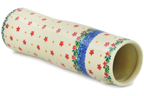 This Polish pottery Vase is made by Ceramika Artystyczna workshop in Boleslawiec, Poland. Manufacturer item number H4073M. It is 12" high and measures 3½" by 3½". The capacity of this Vase is 37.9 oz when filled to rim and it weighs 2.0 lbs. The pattern was designed by artist Teresa Liana. It is part of the Little Flowers Collection.
