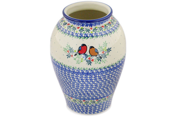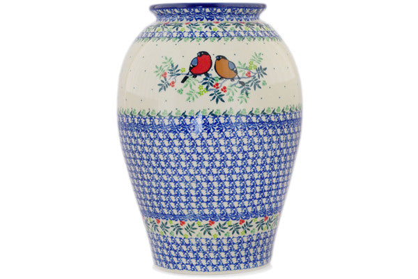 This Polish pottery Vase is made by Ceramika Artystyczna workshop in Boleslawiec, Poland. Manufacturer item number H1652R. It is 12¼" high and measures 8¾" by 8¾". The weight of this Vase is 6.3 lbs. It is part of the Robin & Wren Collection.