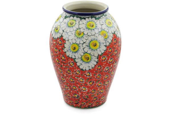 Polish Pottery 12" Vase Sweet Red Petals UNIKAT
