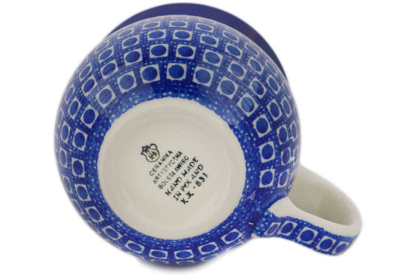 This Polish pottery Bubble Mug is made by Ceramika Artystyczna workshop in Boleslawiec, Poland. Manufacturer item number H7556Q. It is 3¾" high and measures 5" by 3¾". The capacity of this Bubble Mug is 12.2 oz when filled to rim and it weighs 0.8 lbs.