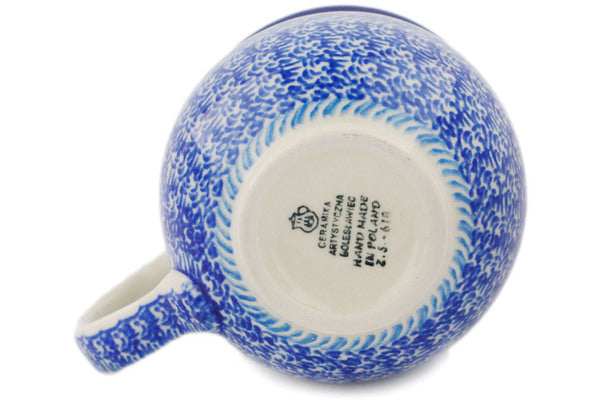 This Polish pottery Bubble Mug is made by Ceramika Artystyczna workshop in Boleslawiec, Poland. Manufacturer item number H7436Q. It is 3¾" high and measures 5" by 3¾". The capacity of this Bubble Mug is 12.2 oz when filled to rim and it weighs 0.8 lbs.