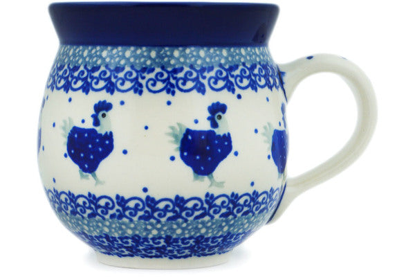 Polish Pottery 12oz Bubble Mug Blue Chicken