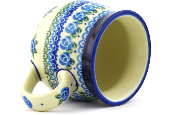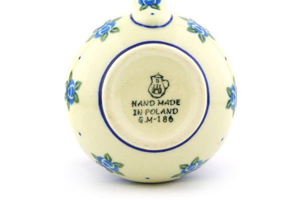 This Polish pottery Bubble Mug is made by Ceramika Artystyczna workshop in Boleslawiec, Poland. Manufacturer item number H2398D. It is 3¾" high and measures 5" by 3¾". The capacity of this Bubble Mug is 12.2 oz when filled to rim and it weighs 0.8 lbs. The pattern was designed by artist Maria Starzyk. It is part of the Bluebuds Collection.