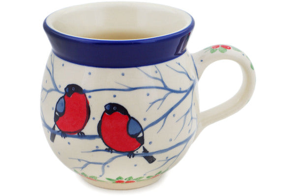 Polish Pottery 12oz Bubble Mug Bullfinch On Rowan Winter Berries UNIKAT
